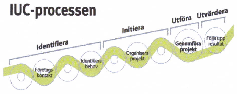 IUC-processen Identifiera Initiera Utföra Utvärdera Företagskontakt Identifiera behov Organisera projekt Genomföra projekt Följa upp resultat