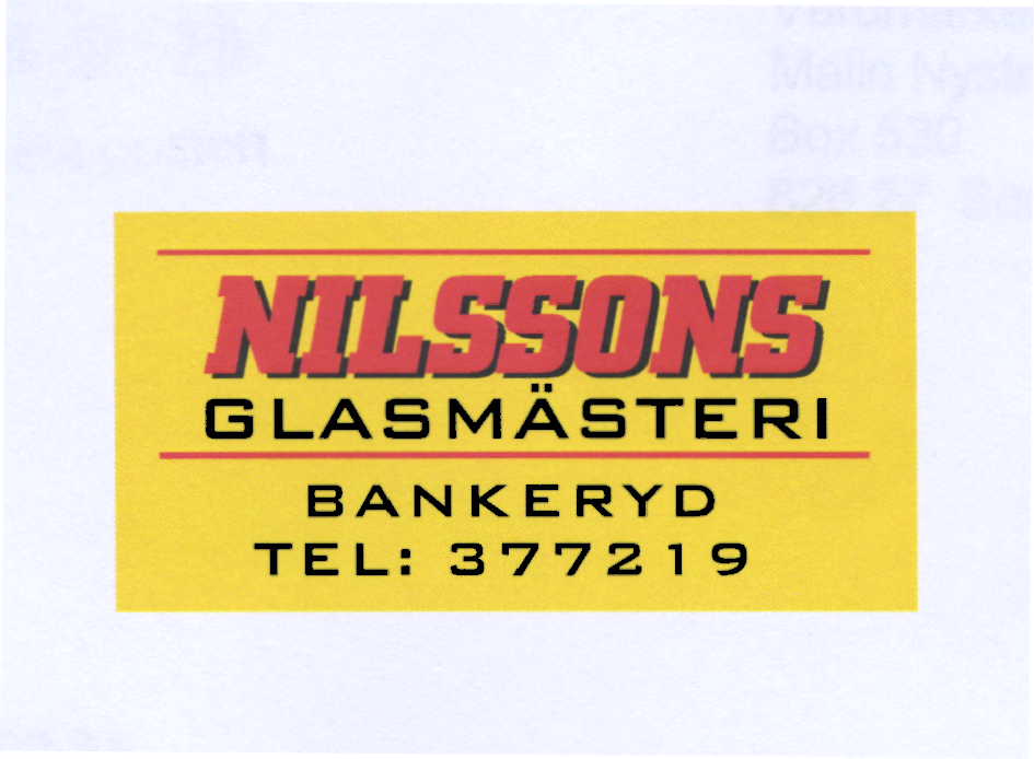 NILSSONS GLASMÄSTERI BANKERYD TEL: 377219