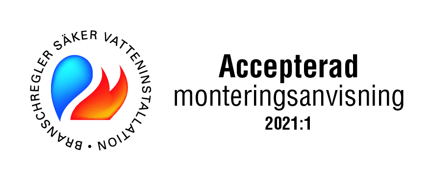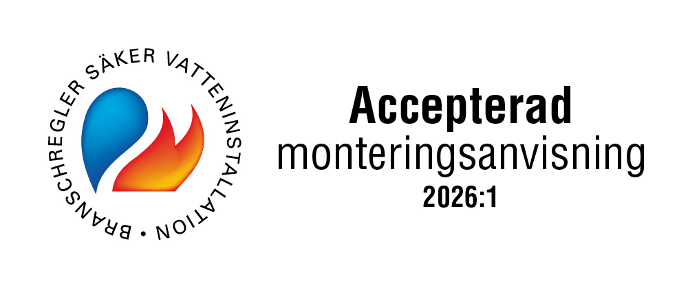 BRANSCHREGLER SÄKER VATTENINSTALLATION Denna produkt är anpassad till Branschregler Säker Vatteninstallation 2026:1. Leverantören garanterar produktens funktion om branschreglerna och monteringsanvisningarna följs.