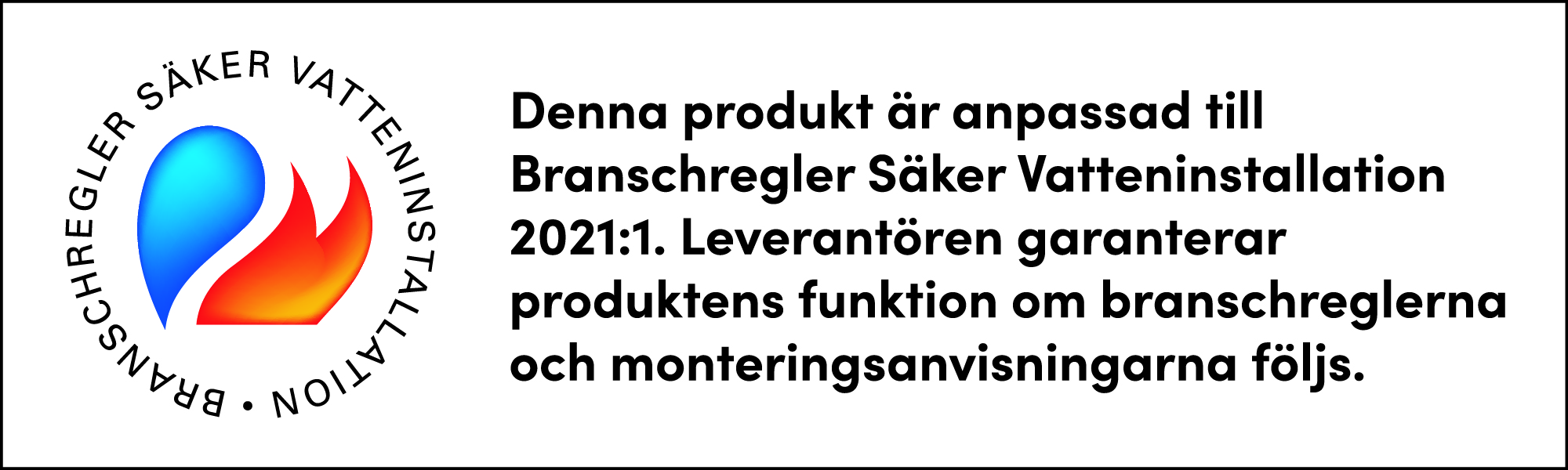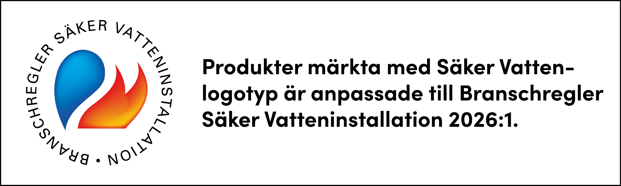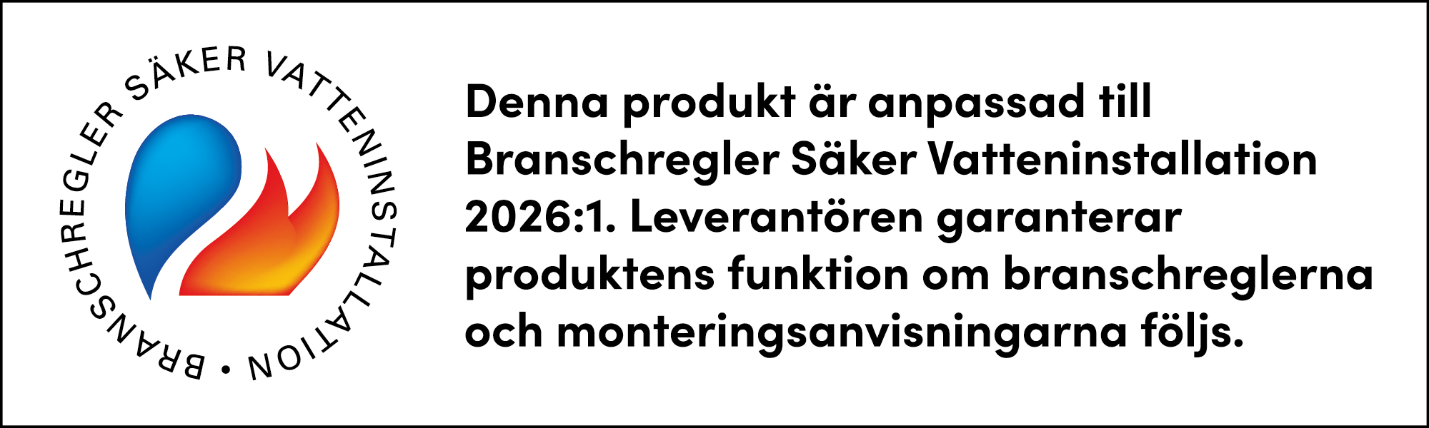 BRANSCHREGLER SÄKER VATTENINSTALLATION Produkter märkta med Säker Vatten-logotyp är anpassad till Branschregler Säker Vatteninstallation 2026:1.
