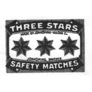 TRE STJÄRNOR SÄKERHETSTÄNDSTICKOR JÖNKÖPINGS & VULCANS T.F. A-B. JÖNKÖPING