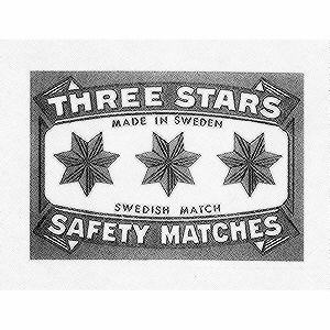 THREE STARS SAFETY MATCHES MADE IN SWEDEN